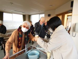 初日の出が出てからご入居者様の甘酒が進みます(笑)