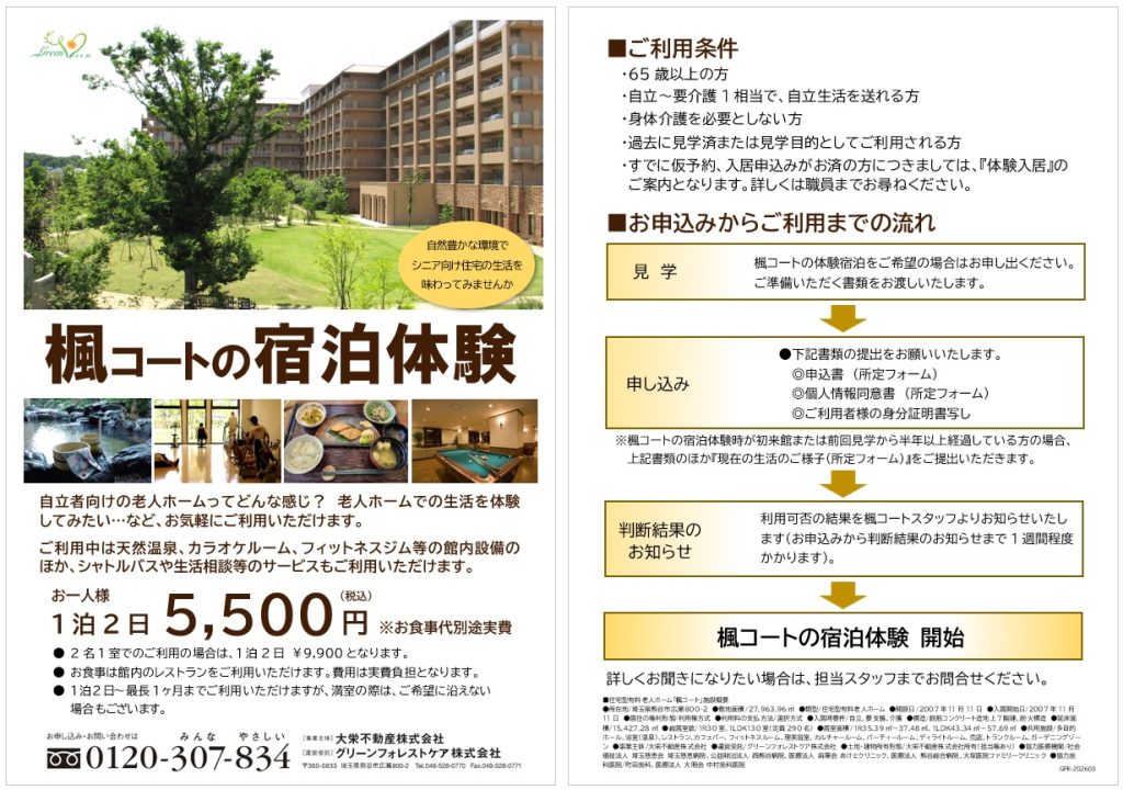 さて、永年にわたり『ホテルステイ』の名称でご愛顧いただいておりました宿泊サービスですが『楓コートの宿泊体験』に名称変更いたしましたことを、この場をお借りしてご報告申し上げます。