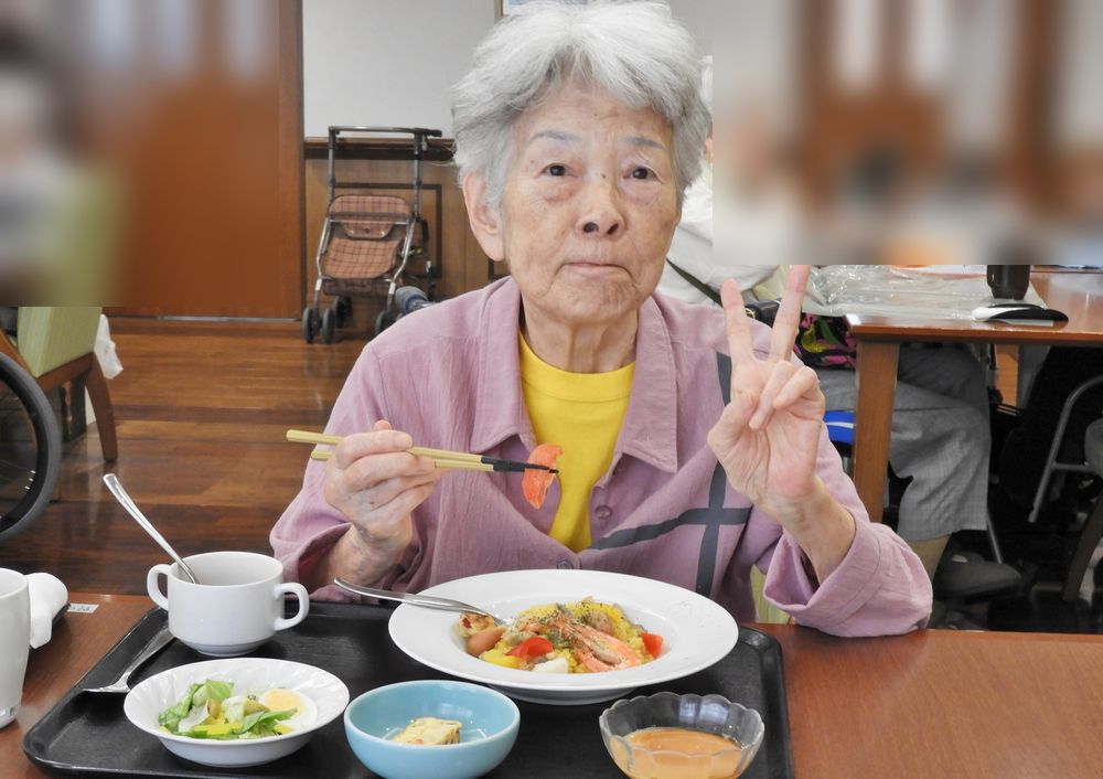 9月スペシャルメニュー『パエリア』 calendar_today 2025/9/13 皆様こんにちは!! 9月10日の昼食に『パエリア』が提供されましたよ(^^♪ エビ・カニ・アサリなど 海の幸がたっぷりと入った豪華なパエリアに 皆様大喜び☆ 海鮮の旨味が口いっぱいに広がり 「見た目よし、味よし」の大満足な一品でした。 「美味しい!」と大絶賛の声がたくさん聞かれました。 ・ 次回のスペシャルメニューは紅鮭の塩焼きになります。 9月24日の昼食の時間をお楽しみに🎵