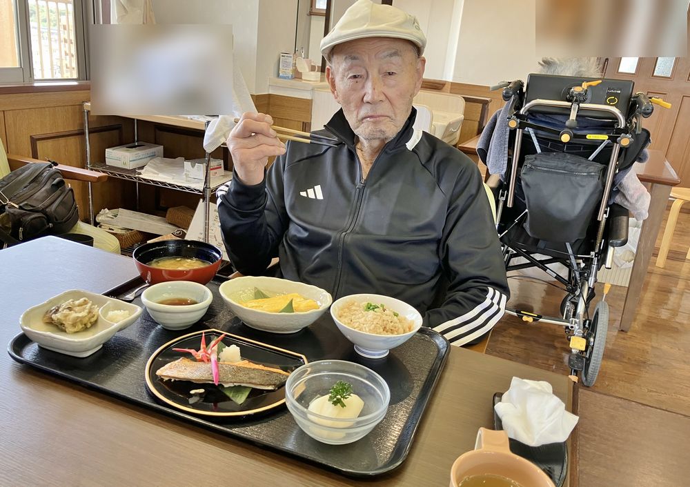 9月スペシャルメニュー『紅鮭の塩焼き』 calendar_today 2025/9/26 9月24日の昼食に紅鮭の塩焼きが昼食に提供されました。 脂がさっぱりとした 紅鮭の塩焼きは ご飯のお供にピッタリ!! 汁物には具だくさんの豚汁・さらに出汁巻き卵に舞茸の天ぷらなど 盛りだくさんな内容でした。 本日のメニューはご飯が思わず進んでしまうようなラインナップで いつもより皆様の箸の進みも早かったように感じます(^^♪ 美味しい昼食に 皆様大満足なご様子でした。 10月のスペシャルメニューもお楽しみに♡